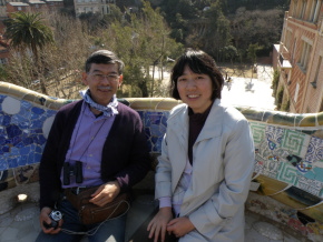 ガウディ設計 1900年から 1914年にかけて建設された公園。 駐車場からは しばらく椰子や松の木の中を抜けて歩く |