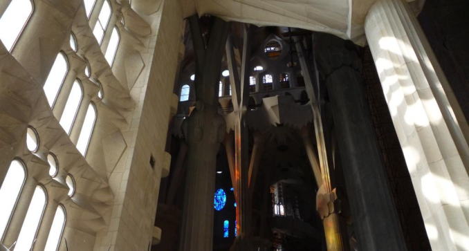 | 聖堂内部 枝分かれした木が生えているような柱達 なんというモダンな構造 装飾と共に一体となった不思議な空間です。 |