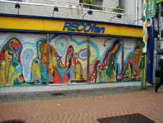 シャッターは閉まっていても絵が描いてあり楽しい。