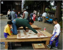 庭では将棋、オセロなどにぎわった。
