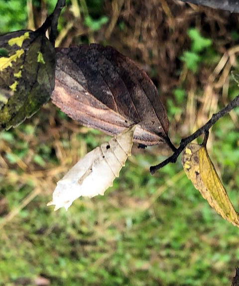 2021/10/24 エノキの葉の裏に オオムラサキ? ゴマダラチョウ? のさなぎの抜け殻 |
