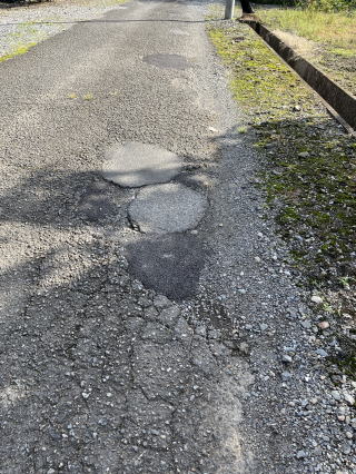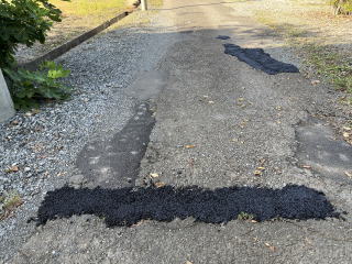 2024/7/20 建設課よりアスファルト補修材を2袋もらい受け補修 | |