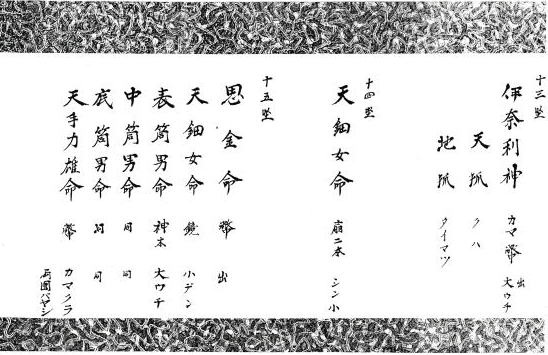 十三座 伊奈利神 天狐 地狐 十四座 天鈿女命 十五座 思金命 天鈿女命 表筒男命 中筒男命 底筒男命 天手力雄命 |