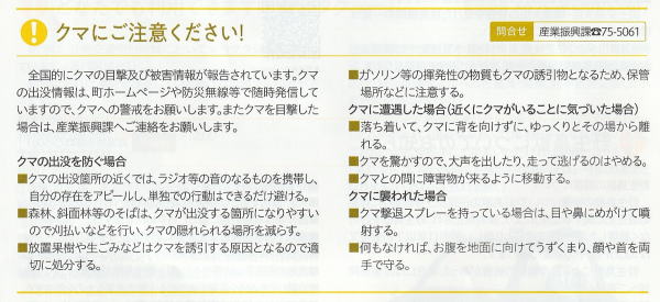| 3月2日の評議会でご報告した以下の内容について、再確認が必要として回覧します。 ・農薬を使用する場合は、風や薬剤濃度など充分注意し近隣確認し使用して下さい。 (農薬による体調不良の苦情があった) 区長田島昭泉 以下資料は 小鹿野町広報6月号と農林水産省消費・安全局農産安全管理課 農薬対策室リーフレット ![]() ![]() |