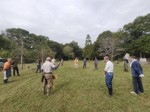 ![]() 代表挨拶後 下準備で広く草刈り 日程報告 |