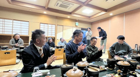 新年会は赤谷温泉 小鹿荘にて 司会は近藤・田村