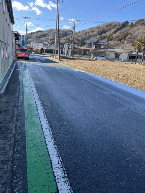 ↓1月3日 雪が残りすでに凍結している道が見受けられたので近隣の道に融雪剤をまきました。 泉田のここは日が当たらずに雪が降れば必ず凍結するところですので 地区は違いますが心配なので融雪剤を蒔いておきました。 他アグリカルチャ+渡辺企画の前、みずむら豆腐+井嶋鉄鋼の横に散布しました。 融雪剤は妙見様の横に置いてあります