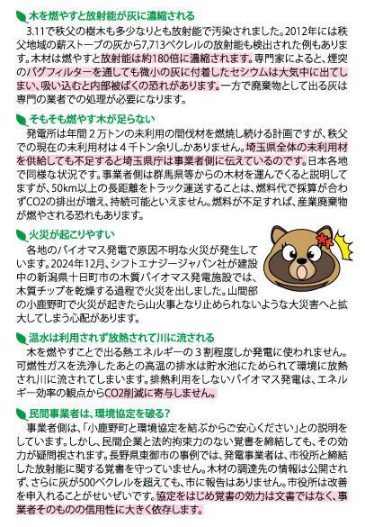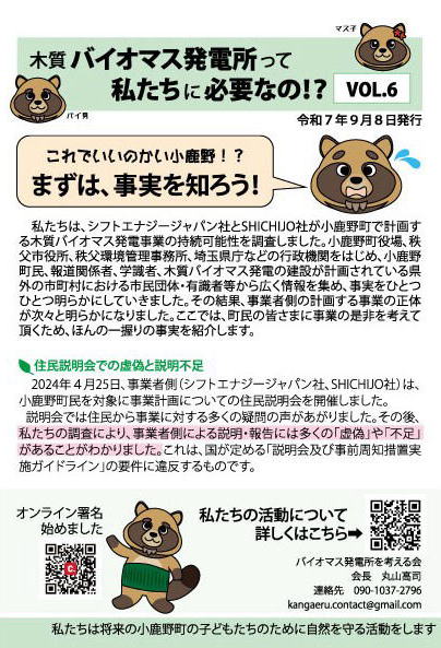 去る4月25日に「小鹿野(おがの)町バイオマス発電所の説明会」を受けて私たちの会が発足しました。町民のみなさんの意見を聞きました。