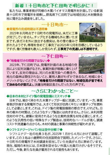 飯田地区・三山地区の住民へ十日町バイオマス発電所の見学会への案内の文書が事業者側から配布