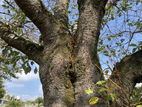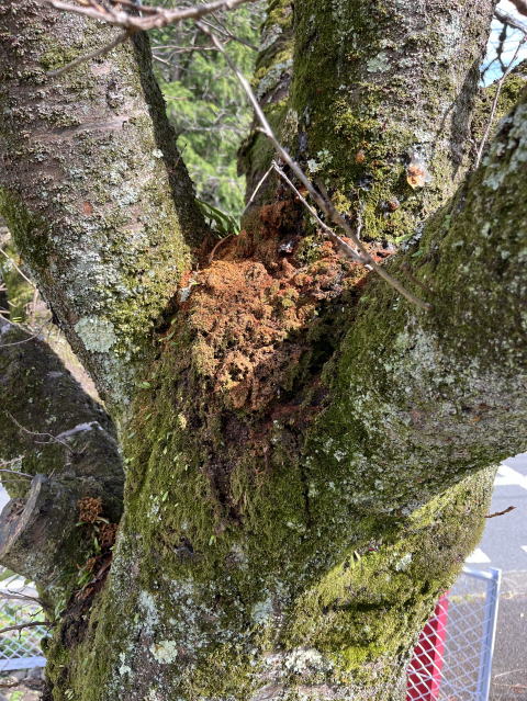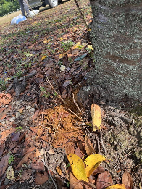 2025/9/9 調査 運動場の桜です。掘り屑が積もっていました | |