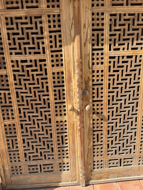 朝は1時半に目が覚めた。日本では5時半だ。時差がなじめず苦労する。裕子も3時に洗濯を始めた。6時には朝散歩に出てみた。ちょっと肌寒い。グーグルーマップを頼りに細かい路地を歩く。家々の扉は細かな彫刻で幾何学模様が付いていて素敵だ。太い配管が宙を飛んで家々につながっている。どうもガス管のようだ。少しガスのにおいもしたが大丈夫だろうか。多くの電信柱は下が腐ったのか切られてコンクリートの柱に括りつけられていた。その電柱は時にはひさしに穴を開けて通されている。電柱が大事にされてはいるのだろうが資材も乏しいようだ。