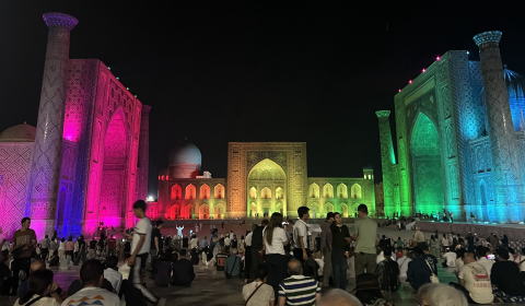さて、夜はレギスタン広場へ行きマサドラの綺麗なライトアップを見学。広場では許可の無い子供の売り子がいて警備員が取り締まろうと鬼ごっこをしているのが何とも愉快だった。子供も生活に必死なのだろう。