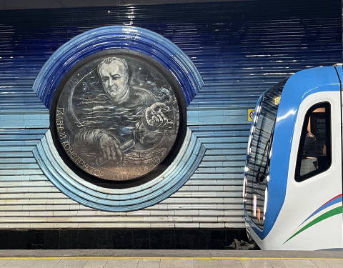 ホテルへは地下鉄に乗って行くのだが、その入り口も見つからず、またしても右往左往。人に尋ねてやっと三人目に「ついてきなさい」とのジェスチャーで向かう。地下に入り改札があり、彼は何かカードでピッピとする。なんと私たちの乗車料金も払ってくれて行きなさいと言ってくれた。いい人もいる!列車の中へ入ると年寄りと見られたか席は譲ってくれた。私の前に一人の青年が来て「日本人ですか。日本語を話してもいいですか」と、日本好きの方だった。いつか日本に行きたいと言っていた。ウズベキスタンは親日なのだ。