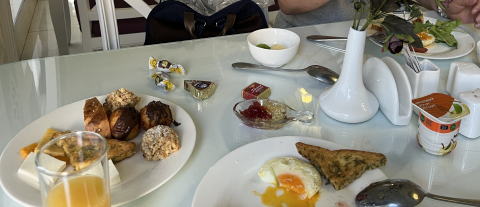 ホテルの朝食 この日は果物メインにして食べました。 イチジクもブドウも それなりにおいしい。 |