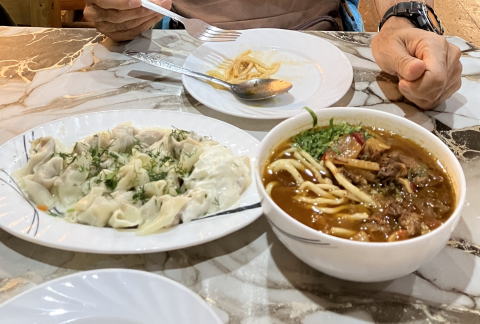 ![]() 右がラグマン なかなか うまかった。 水ぎょうざはダンプリング これもおいしい。 |