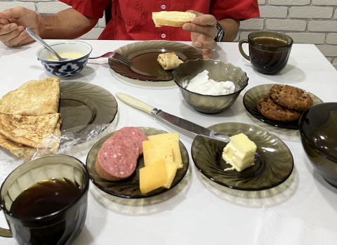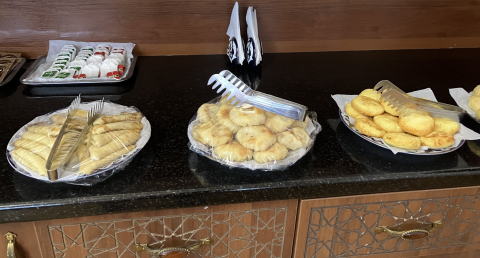 最初のホテルのテーブル 堅めのヨーグルト チーズ類など |