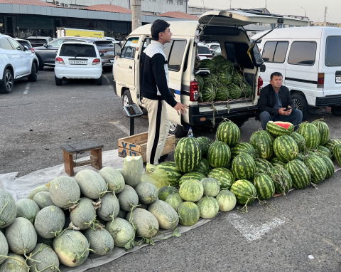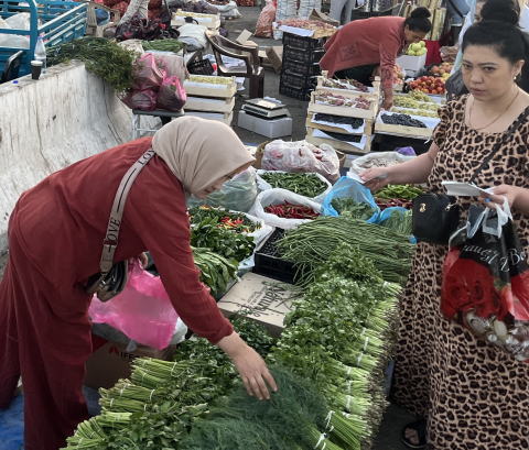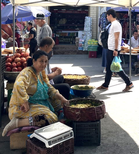 ![]() タシュケントの市場ミラバットバザールにて(ロシア正教会近く) |