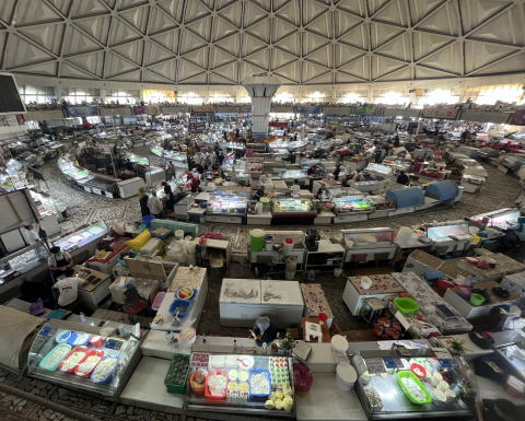 ![]() チョルス市場のドームの中は肉屋さんがいっぱい |
