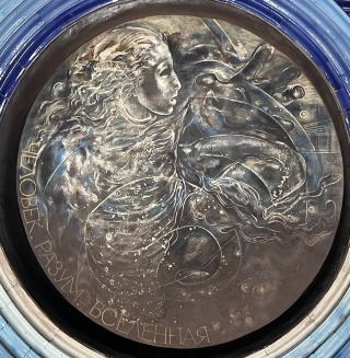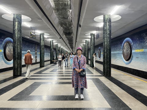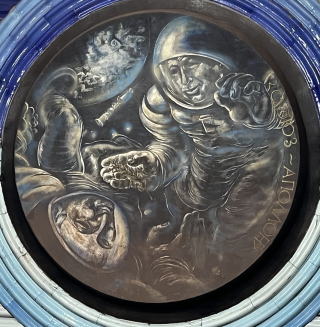 コスモナフトラル駅(Kosmonavtlar station) 宇宙飛行士がテーマになっている駅。 1980年代に造られた。 Kosmonavtlarは宇宙飛行士という意味。 旧ソ連時代に宇宙に飛んだ歴代の飛行士達の絵が描かれている |